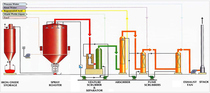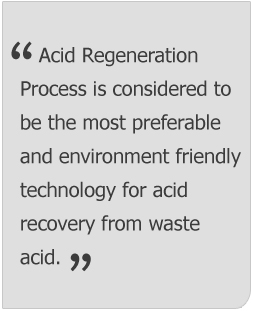 Acid Regeneration process is considered to be the most preferable technology available for treatment of Waste Acid generated from Pickling Line in Cold Rolling Mill. |